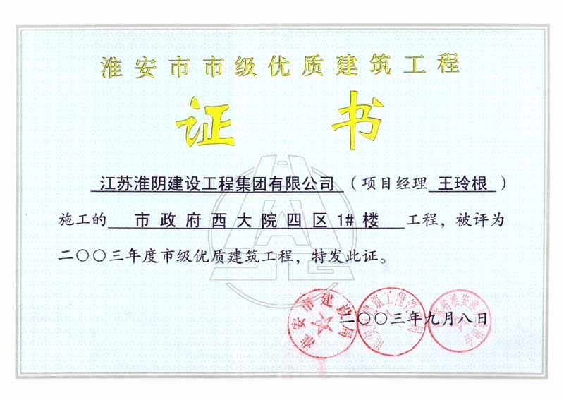 2003年市级优质工程市政府西大院四区1#楼(王玲根)