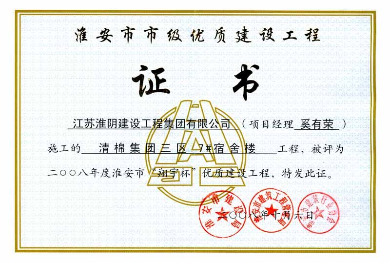 2008年市文明工地淮安市北京路中学高中教学楼-汪洪斌