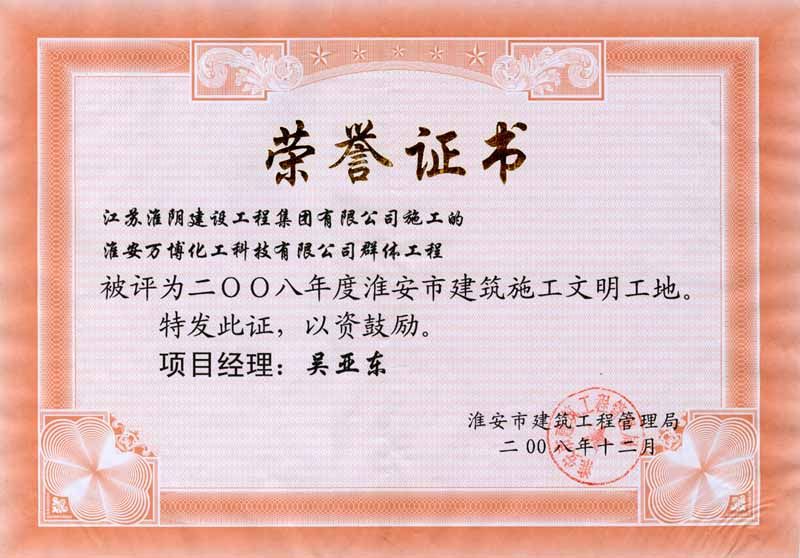 2008年市文明工地淮安万博化工科技有限公司群体工程-吴亚