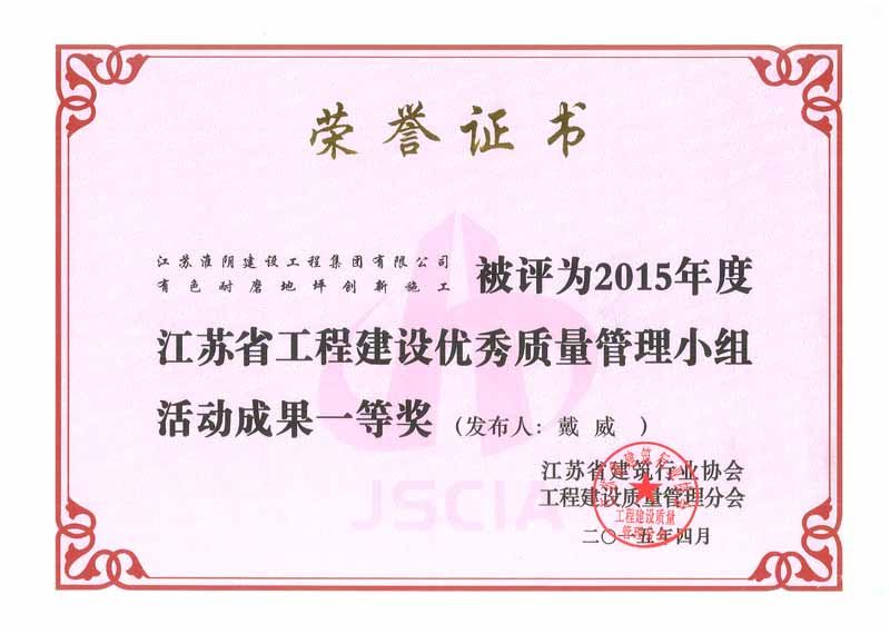 2015年全国工程建设优秀质量管理小组二等奖厚地和美三标