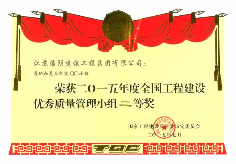 2015年全国工程建设优秀质量管理小组二等奖厚地和美三标段QC小组