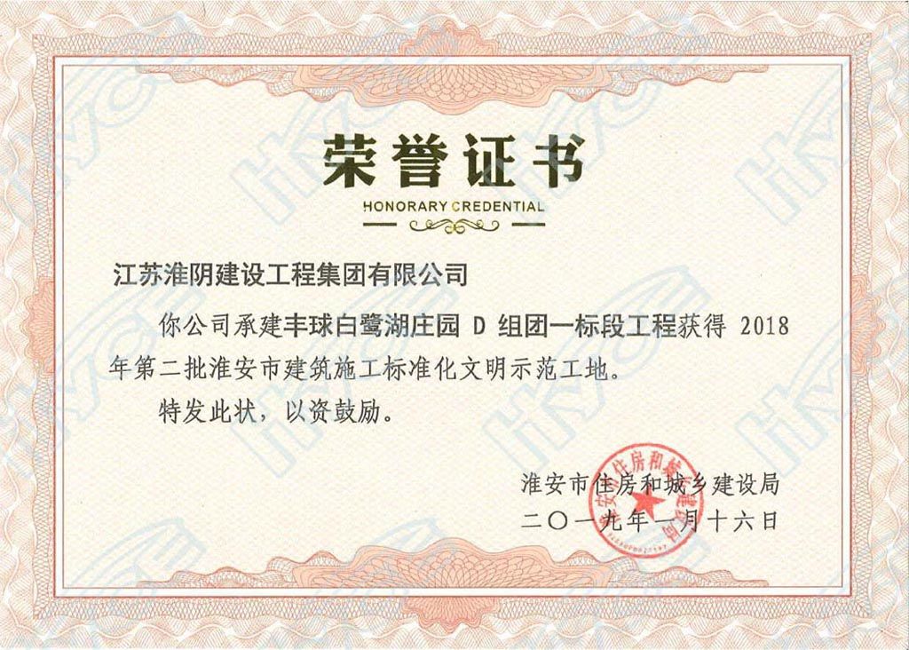 淮安市建筑施工标准化文明示范工地-丰球白鹭湖庄园D组团工程