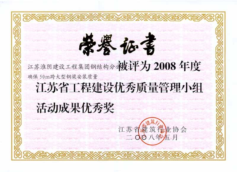 2008年省工程建设优秀质量管理小组活动成果优秀奖-确保50M跨大型钢梁安装质量