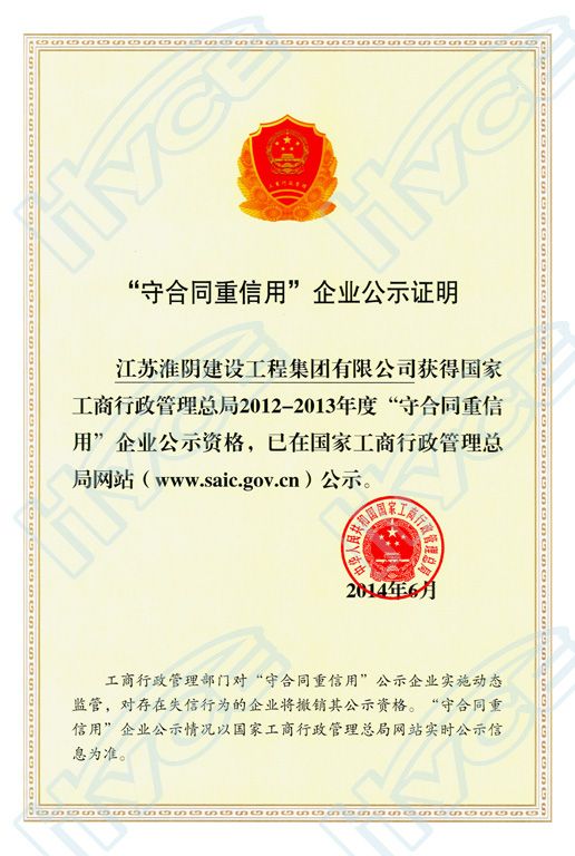 国家守合同重信用企业公示证明