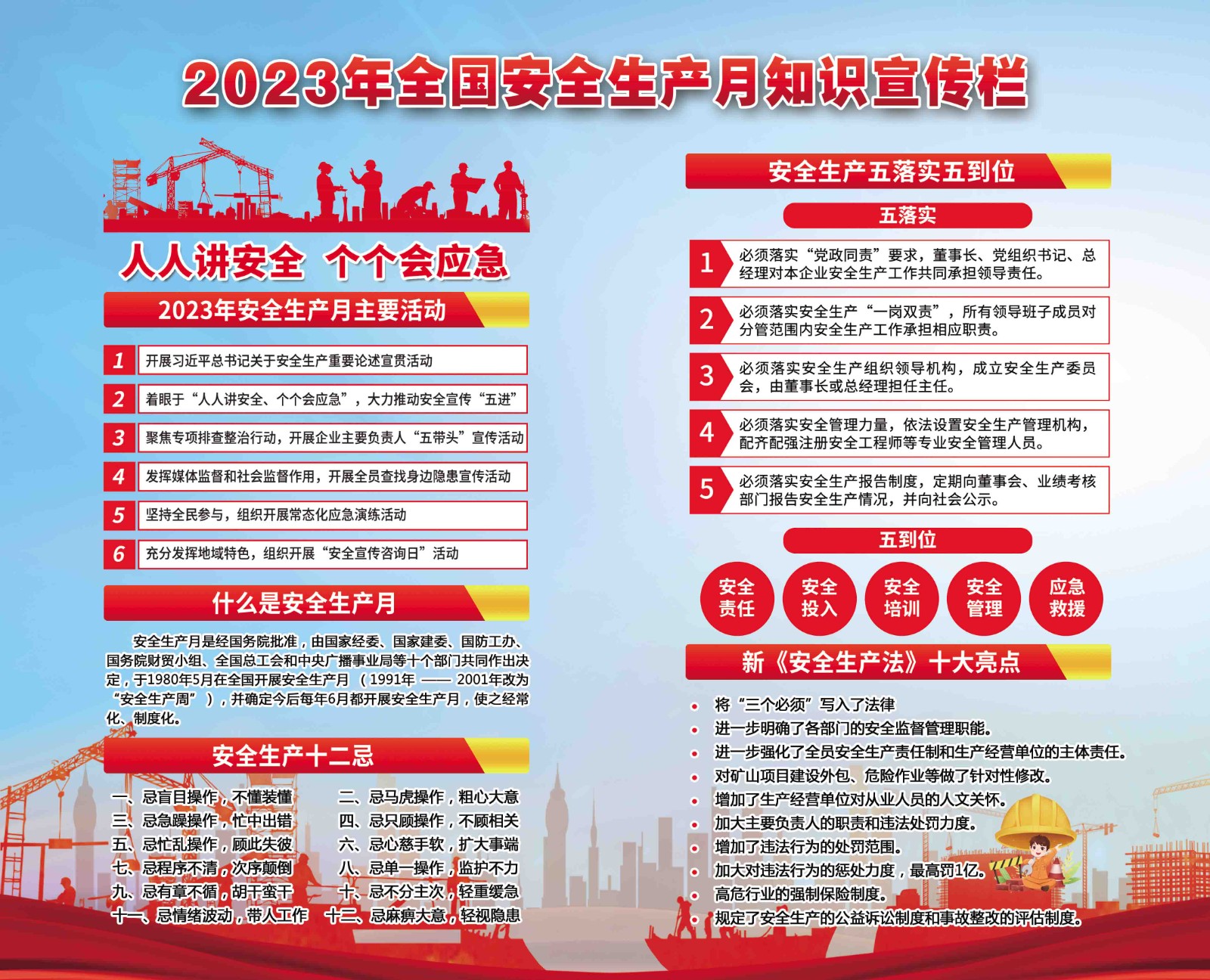 2023年6月是我国第22个安全生产月,ML官网紧紧围绕“人人讲安全、个个会应急”的活动主题,根据相关文件精神,开展“安全生产月”活动的统一部署和安排,安全设备部及时制定了活动方案,组织召开专题会议进行宣传部署和贯彻落实,使活动开展的有计划、有布置、有检查、有落实,从而使安全生产月活动在ML官网机关、各分(子)公司、项目部范围内迅速有序开展,通过本次活动的开展,取得了显著的效果: